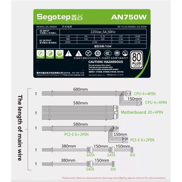 Segotep AN750 | 750w | 2x Pci-e | 80 Plus White