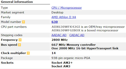 ADX630WFK42GI | AMD Athlon II X4 630 | Socket AM3 | 4 Nucleos | 2.8 Ghz